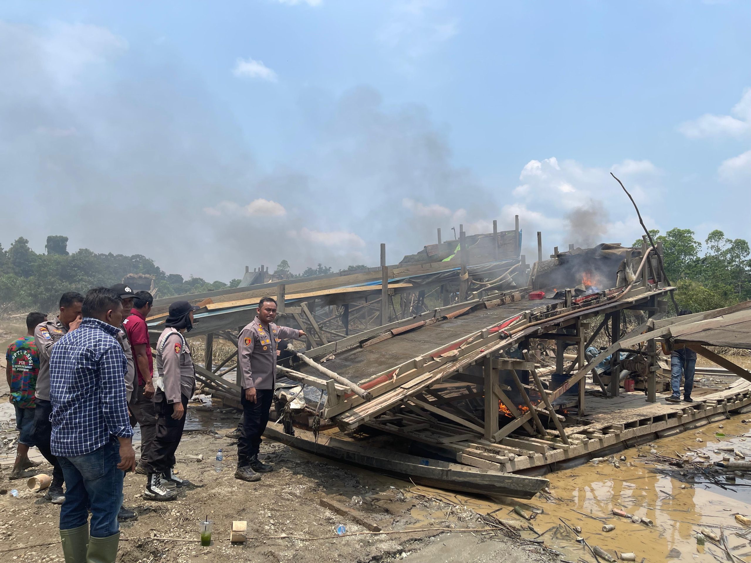 Sebagai langkah tegas dan bentuk komitmen dalam memberantas aktivitas ilegal yang merusak lingkungan, petugas langsung melakukan tindakan pemusnahan terhadap rakit-rakit tersebut dengan cara dibakar. Sedikitnya lima unit rakit berhasil dimusnahkan di lokasi.