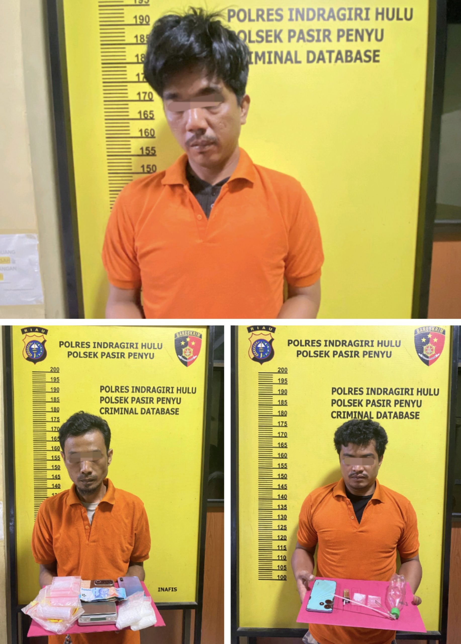 Rangkaian pengungkapan berlanjut hingga pukul 19.30 WIB. Unit Reskrim Polsek Pasir Penyu kembali mengamankan seorang pria berinisial ID alias Siil di rumahnya di Desa Candirejo. Dari penggeledahan, petugas menemukan dua bungkus sabu dengan berat kotor 2,31 gram, alat hisap bong, korek api, serta satu unit handphone. Tersangka mengakui memiliki dan menguasai barang haram tersebut, dan hasil tes urine juga positif amphetamine.