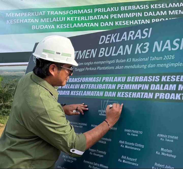 Indragiri Hulu|RK- Komitmen terhadap keselamatan dan kesehatan kerja terus diperkuat perusahaan perkebunan kelapa sawit PT Tunggal Perkasa Plantations (PT TPP), melalui penyelenggaraan Apel Bulan Keselamatan dan Kesehatan Kerja (K3) Nasional Tahun 2026. Kegiatan yang digelar pada Senin (16/2), di area operasional perusahaan ini diikuti jajaran manajemen, staf, serta pekerja sebagai wujud konsolidasi budaya keselamatan di lingkungan kerja.