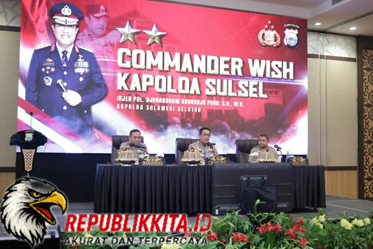 Makassar, Republik_Kita.id|Kapolda Sulawesi Selatan Irjen Pol. Djuhandhani Rahardjo Puro, S.H., M.H., menyampaikan Commander Wish kepada seluruh personel Polda Sulsel bertempat di Hotel Harper Perintis Kemerdekaan, Selasa (04/11/2025).
