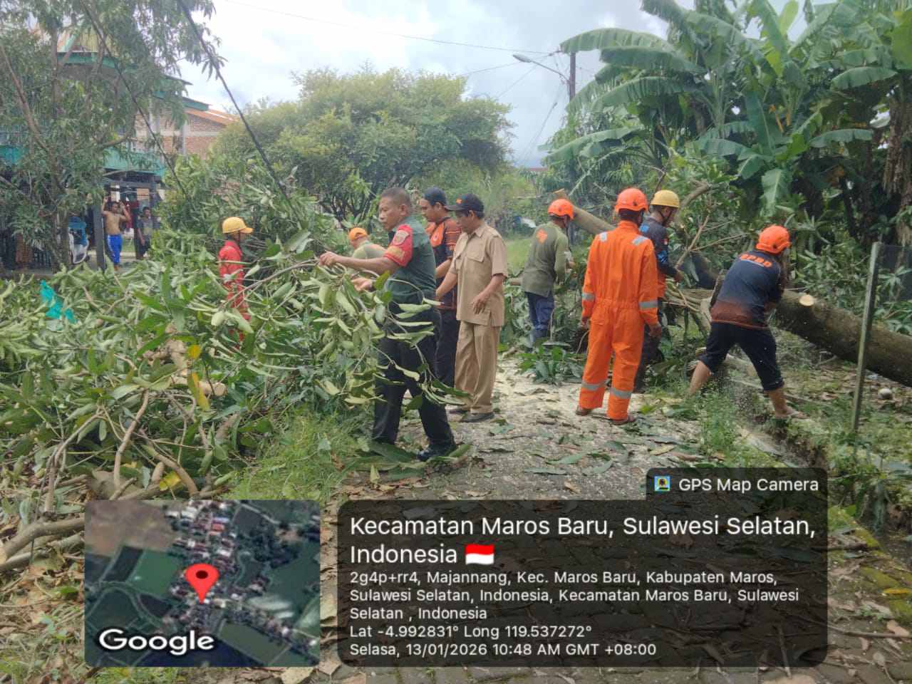 Maros, Republik_Kita.id — Pemerintah Kecamatan Maros Baru bergerak cepat menghubungi Badan Penanggulangan Bencana Daerah (BPBD) Kabupaten Maros setelah menerima aduan masyarakat terkait pohon tumbang di Dusun Jawi-Jawi, Desa Majannang, Kecamatan Maros Baru, yang mengganggu aktivitas dan keselamatan warga. Selasa, 13/01/2026.