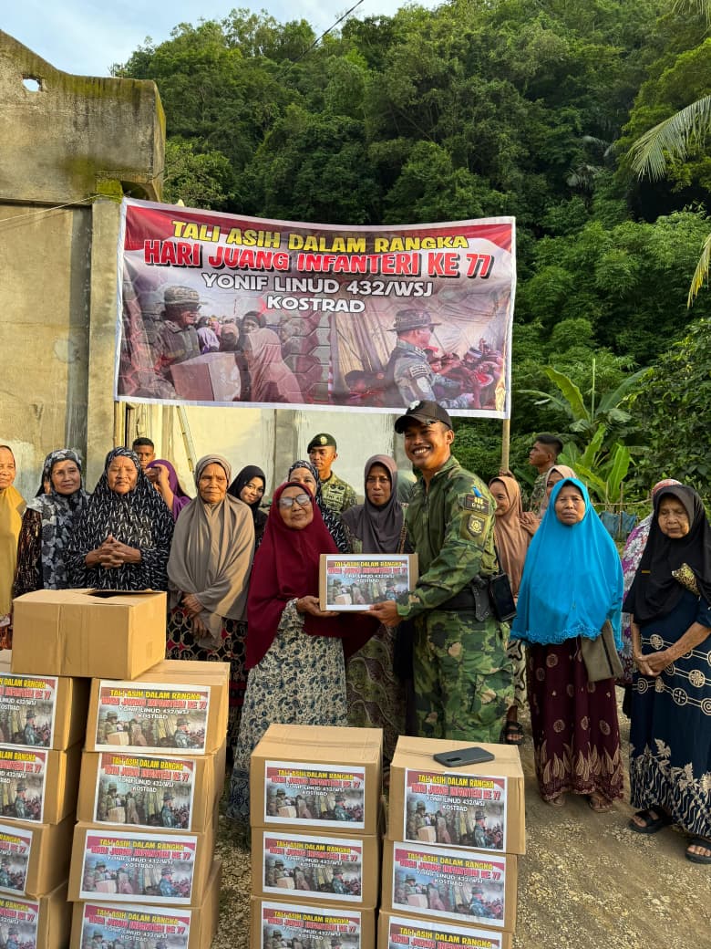 Di sela-sela perjalanan, prajurit Waspada lainnya juga melaksanakan kegiatan teritorial berupa pembagian Tali Asih kepada masyarakat yang berada di sepanjang rute. Kegiatan ini menjadi wujud nyata kepedulian sosial serta mempererat hubungan emosional antara TNI dan rakyat, sejalan dengan semangat kemanunggalan TNI bersama rakyat.