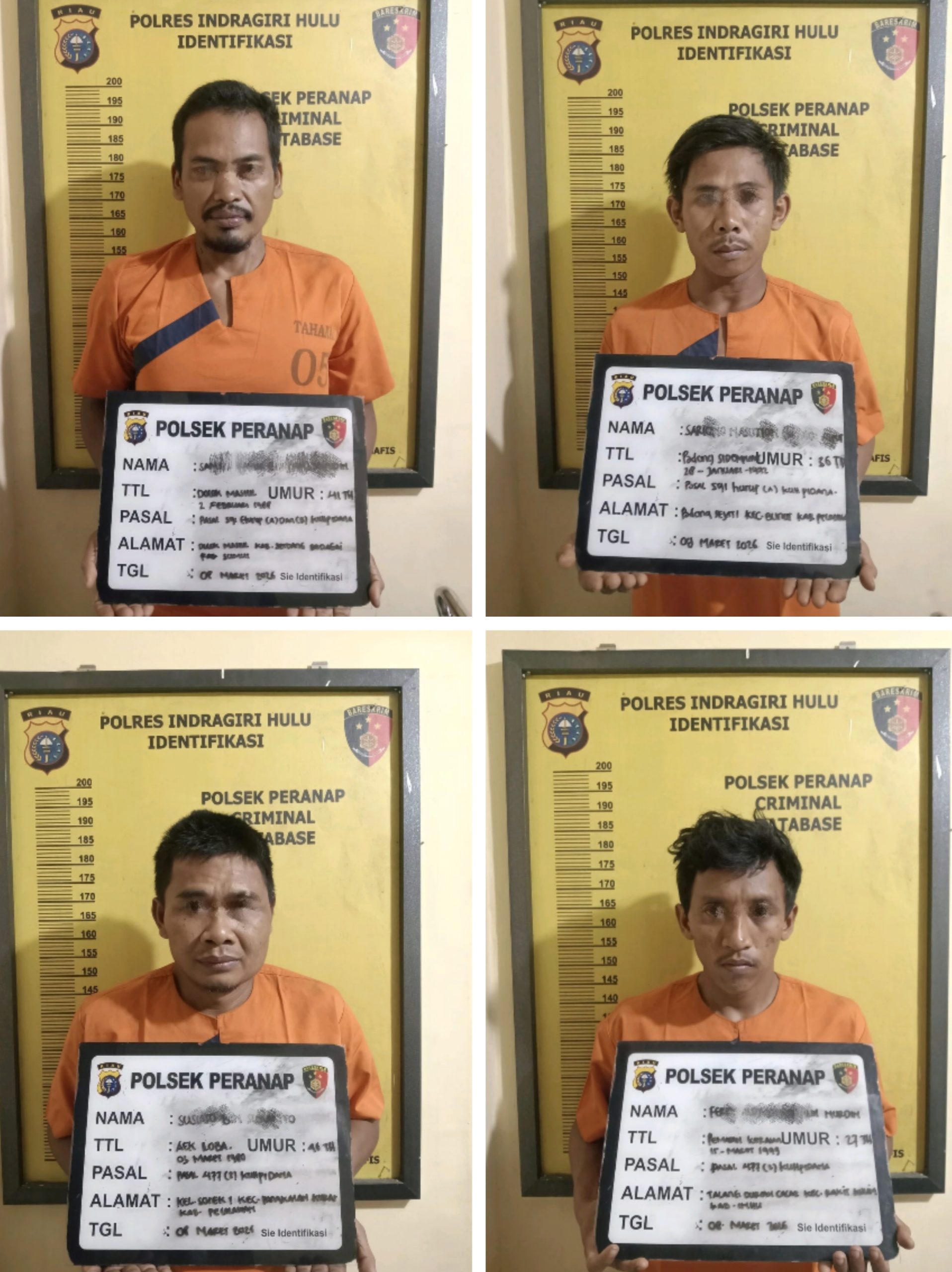 “Saat ini seluruh tersangka beserta barang bukti telah diamankan di Polsek Peranap untuk menjalani proses penyidikan lebih lanjut,” tutup Misran.