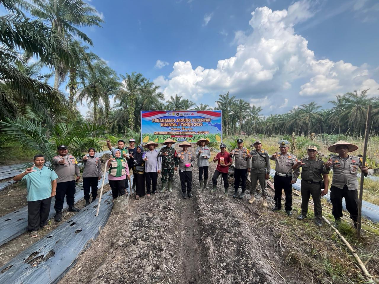 Kapolres Indragiri Hulu AKBP Eka Ariandy Putra, SH., S.I.K., M.Si melalui Kasi Humas Polres Inhu AIPTU Misran, SH menyampaikan bahwa kegiatan penanaman jagung pipil ini merupakan bentuk nyata dukungan Polri terhadap program pemerintah dalam memperkuat ketahanan pangan nasional.