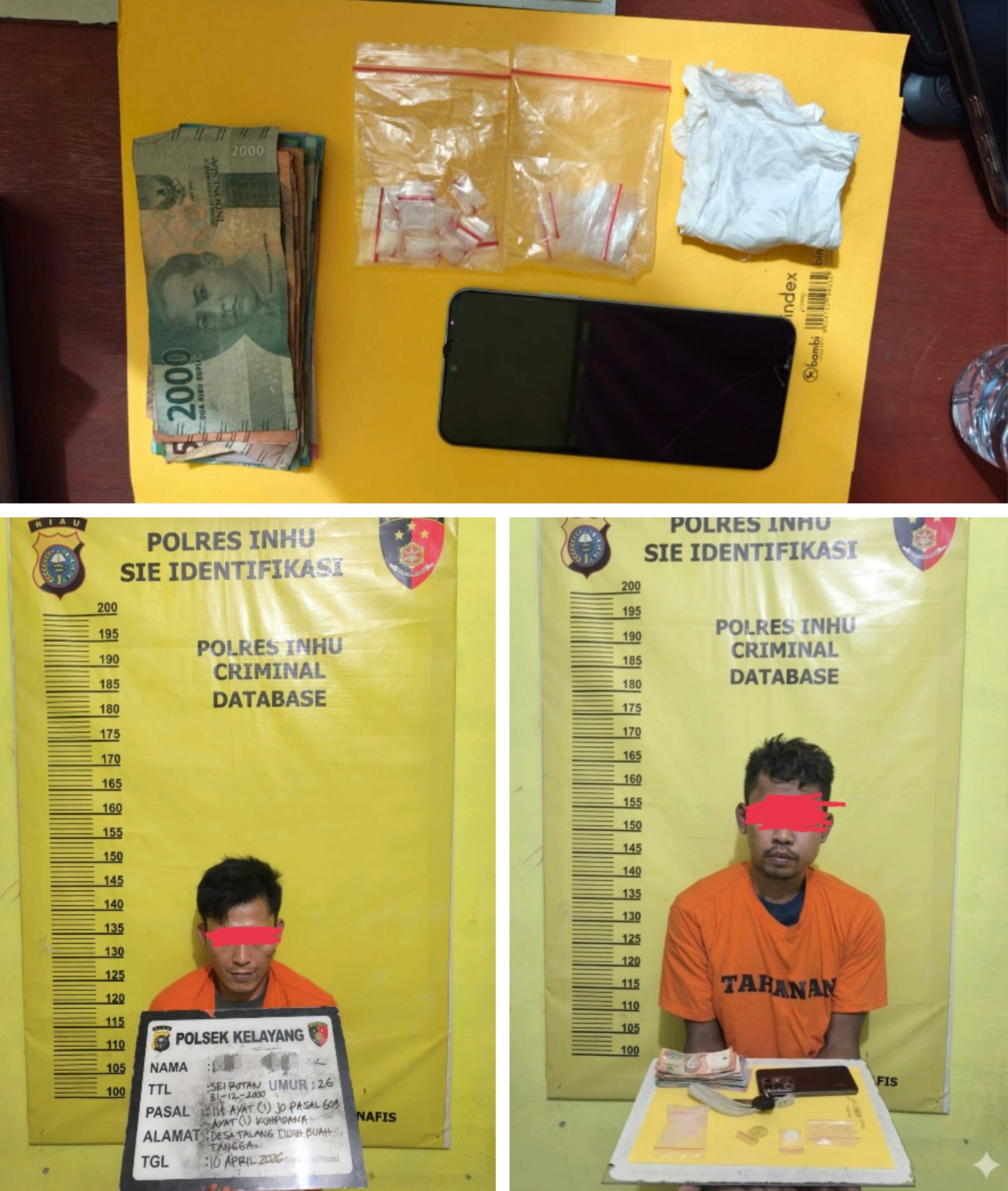 Kapolres Indragiri Hulu (Inhu) AKBP Eka Ariandy Putra, SH., S.I.K., M.Si melalui Kasi Humas Polres Inhu AIPTU Misran, SH menyampaikan bahwa dari hasil penyelidikan tersebut, petugas berhasil mengamankan dua orang pria yang diduga terlibat dalam jaringan peredaran narkotika.