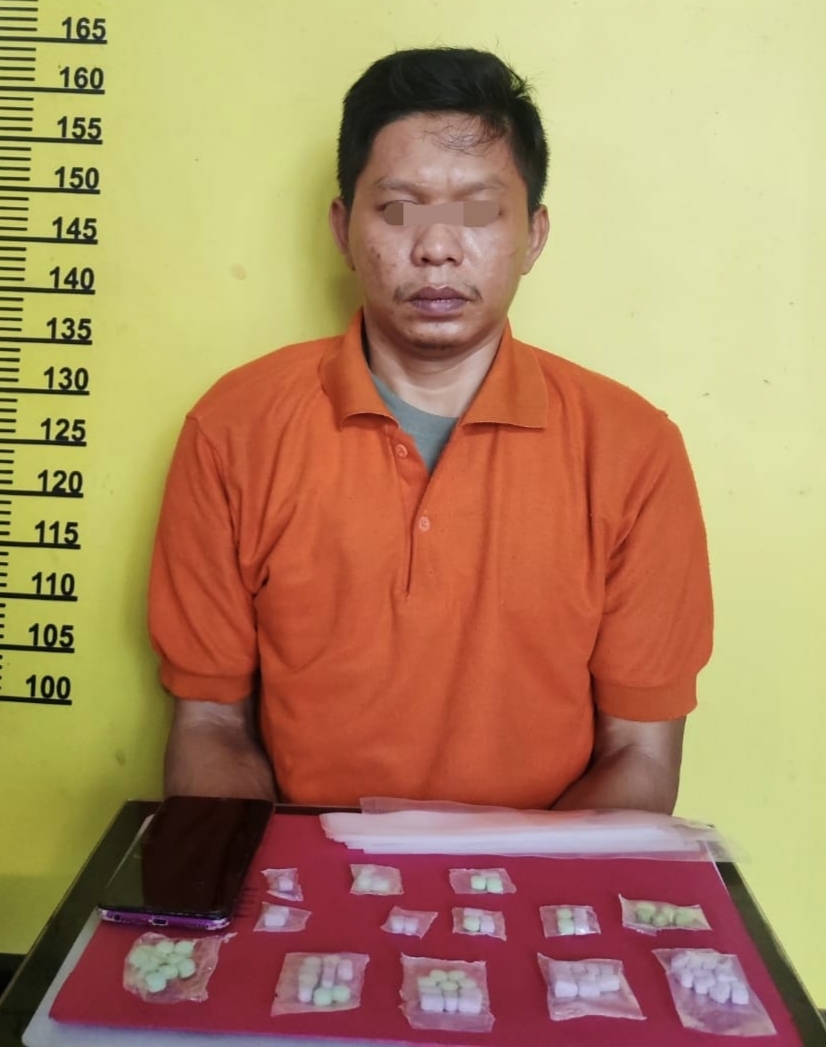 “Berdasarkan laporan masyarakat, tim Opsnal melakukan penyelidikan dan berhasil mengamankan tersangka di depan rumahnya. Dari tangan tersangka ditemukan 3 butir pil ekstasi. Setelah dilakukan penggeledahan di dalam rumah, tepatnya di lemari kamar, kembali ditemukan 12 bungkus plastik berisi pil ekstasi serta plastik kosong dan satu unit handphone,” terang AIPTU Misran.