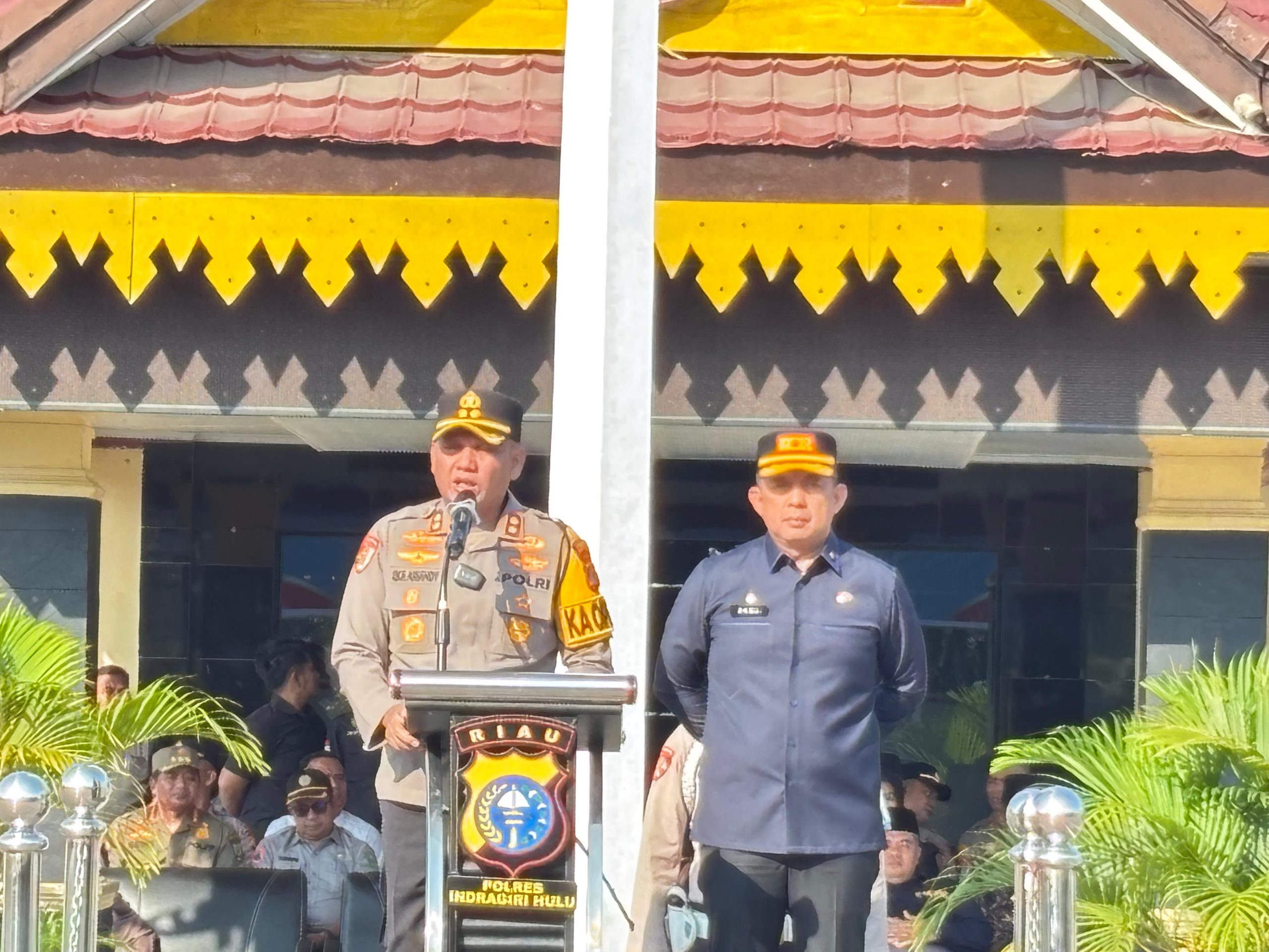 Apel tersebut dipimpin langsung oleh Kapolres Indragiri Hulu AKBP Eka Ariandy Putra, SH., S.I.K., M.Si, bersama Bupati Inhu yang diwakili Sekretaris Daerah Kabupaten Inhu Zulfahmi Adrian, AP., M.Si. Turut hadir sejumlah unsur Forkopimda, di antaranya Ketua DPRD Inhu Sabtu Pradansyah Sinurat, Dandim 0302 Inhu Letkol ARH Bangun Bara Kurniawan Prabowo, SE., M.I.P, Wakapolres Inhu Kompol Lasarus Sinaga, SH., MH, serta perwakilan dari Kejaksaan Negeri, Pengadilan Negeri, Pengadilan Agama, Satpol PP, Senkom, dan para pejabat utama Polres Inhu.