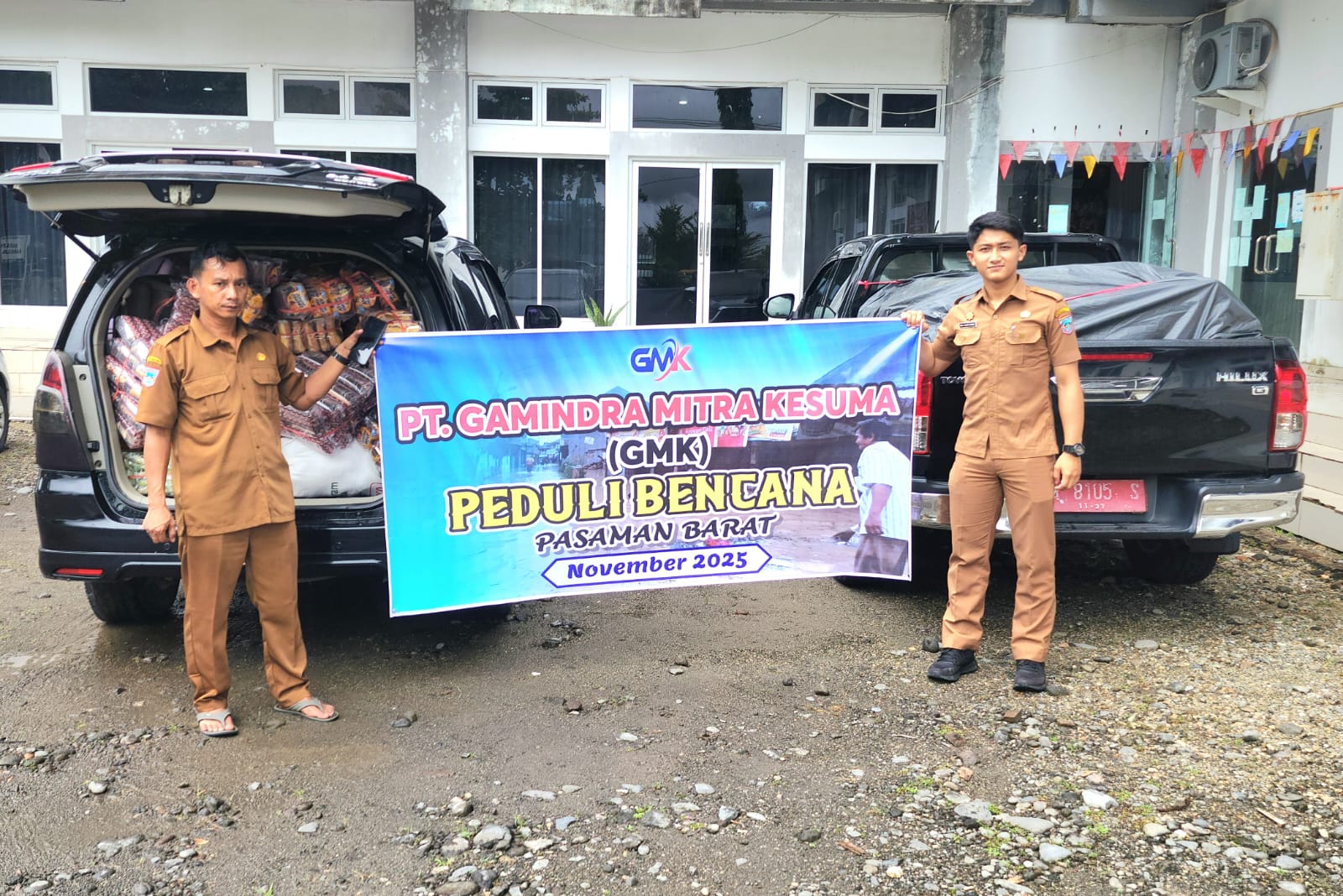 R-K Pasaman Barat SUMBAR Dukungan dari sektor swasta terus mengalir untuk penanganan bencana banjir dan longsor di Kabupaten Pasaman Barat. Kali ini, PT Gamindra Mitra Kesuma (GMK), perusahaan yang beroperasi di kawasan Air Bangis, Kecamatan Sungai Beremas, turut ambil bagian dengan menyalurkan bantuan logistik bagi warga terdampak.