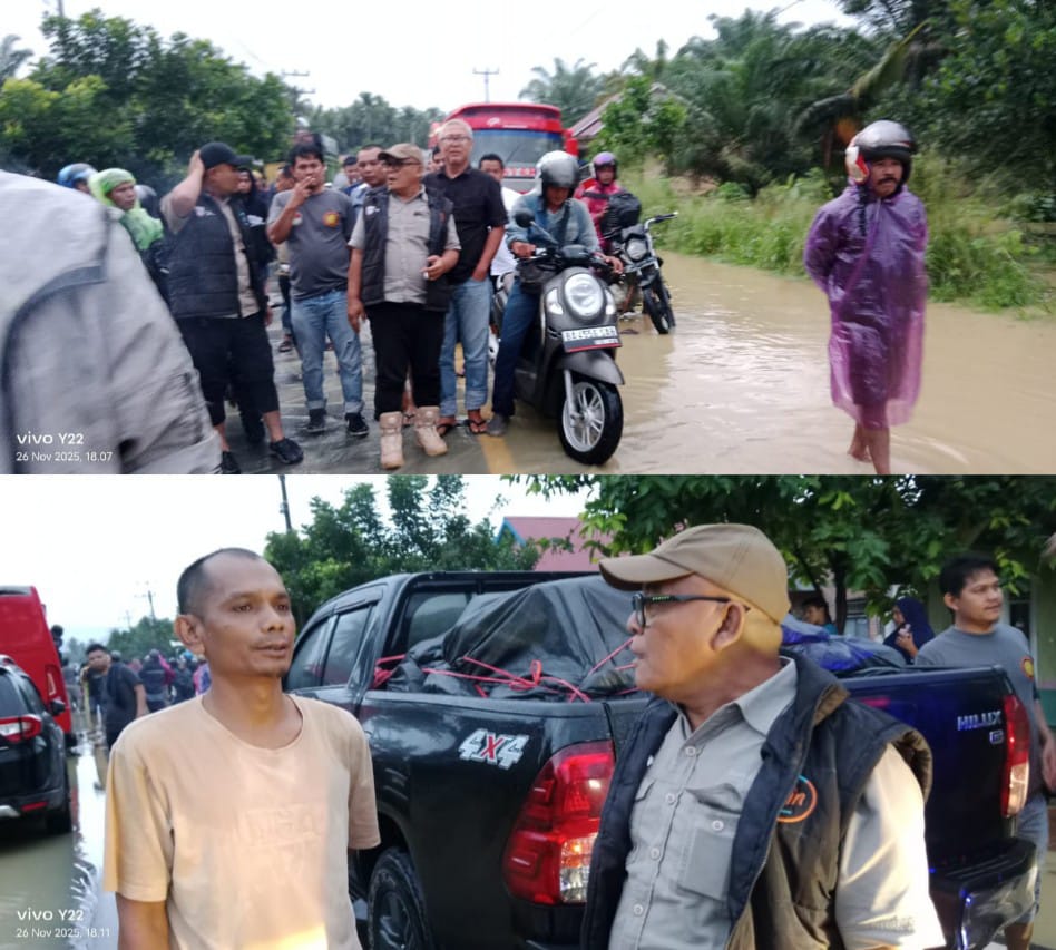 “Kami tertahan dan belum bisa melintas karena debit air Batang Saman naik signifikan dan arusnya deras. Kami memilih menunggu hingga kondisi aman. Melihat situasi ini, saya sampaikan kepada masyarakat untuk benar-benar waspada. Jangan memaksakan diri melewati titik banjir atau lokasi rawan longsor jika cuaca masih ekstrem seperti ini,” tegas Yulianto.