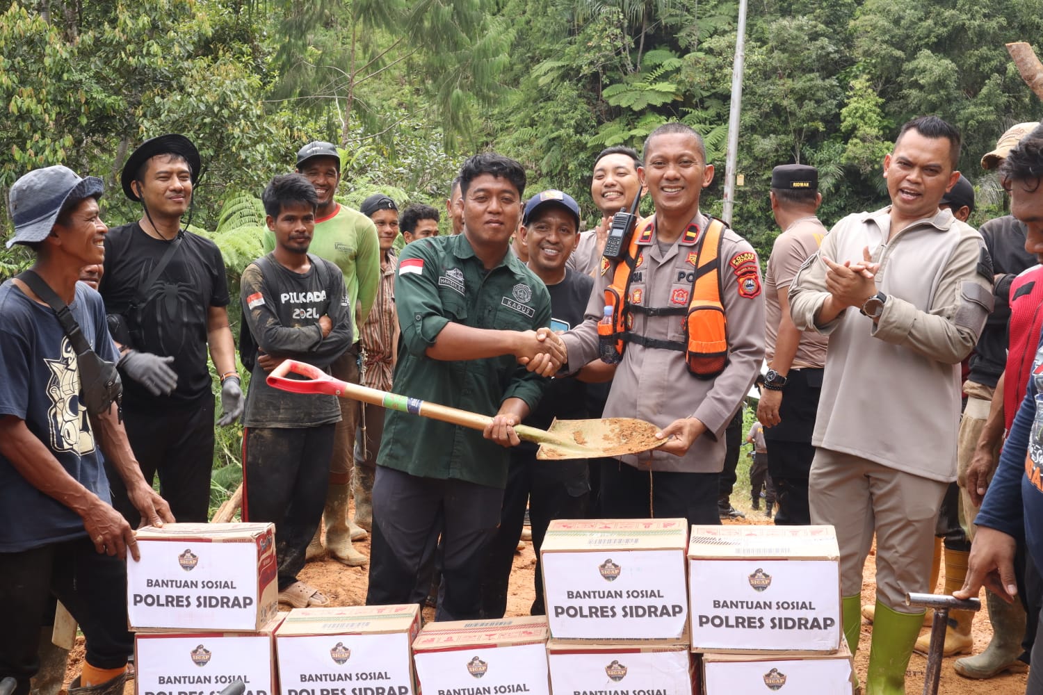 Selain membuka akses jalan, Polres Sidrap turut menyalurkan bantuan kepada warga terdampak berupa paket sembako serta peralatan kerja seperti sekop, cangkul, dan gerobak dorong guna membantu proses pemulihan pascabencana.