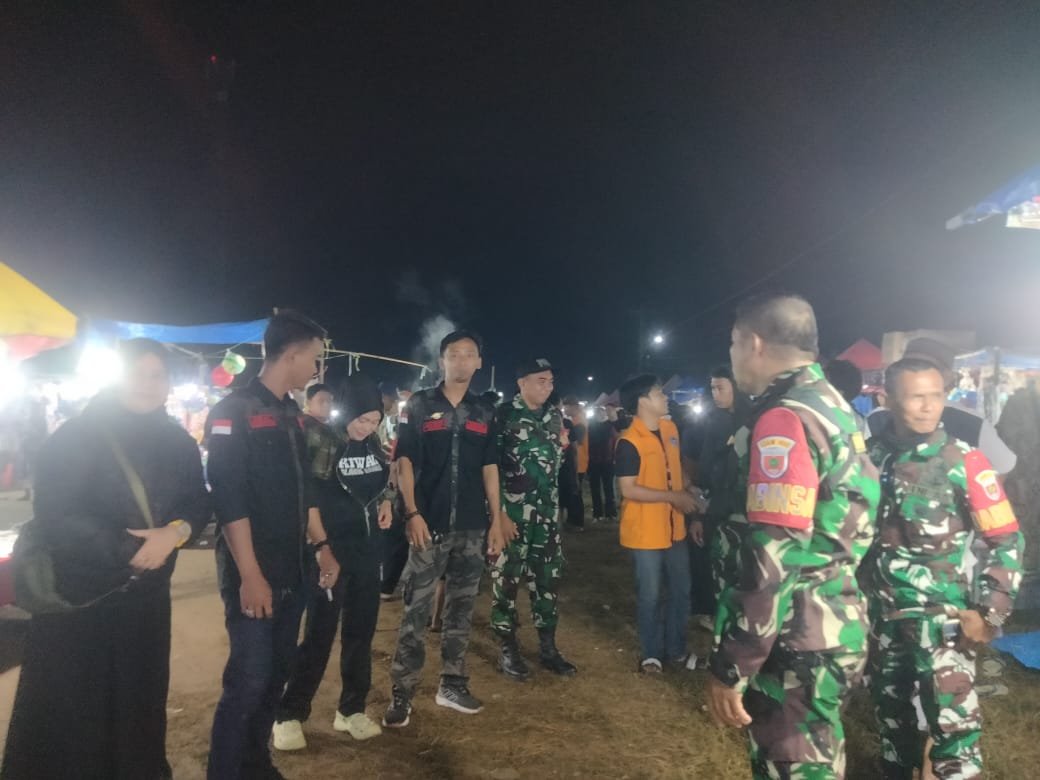 Selama kegiatan berlangsung, petugas melakukan pemantauan di area pasar malam, area parkir, serta jalur keluar masuk pengunjung.
